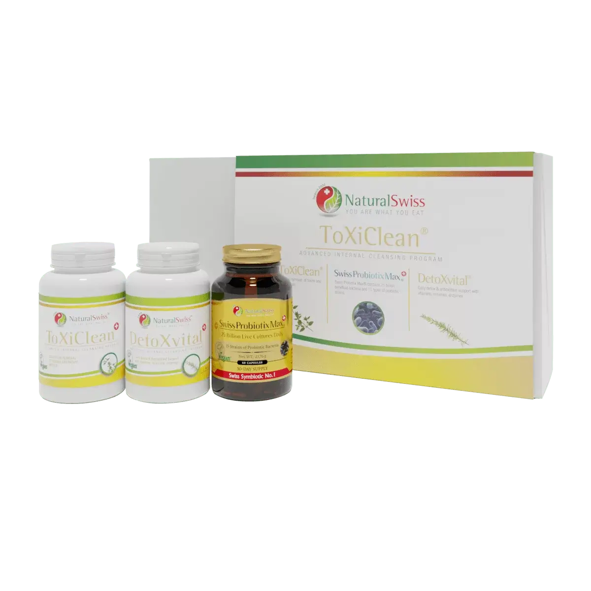 Filozofia značky NaturalSwiss® sa odlišuje od bežných produktov tým, že je založená na viacerých navzájom prepojených prípravkoch, ktoré boli navrhnuté tak, aby pri užívaní v rôznych časových obdobiach dosiahli maximálnu účinnosť. Účinok detoxikačnej kúry ToxiClean je komplexnejší, ak sa užíva spoločne s črevnou očistnou kúrou Clean Inside (hoci je možné ich užívať aj samostatne). Odporúča sa užívať ich súčasne alebo ToxiClean ihneď po ukončení kúry Clean Inside, čo zabezpečí optimálne podmienky na detoxikáciu organizmu. Ak sa rozhodnete kúry neužívať spoločne, dbajte na to, aby interval medzi nimi nepresiahol 2 až 5 mesiacov. Opakovanie črevnej očisty a detoxikácie sa odporúča najskôr po 6 až 12 mesiacoch.